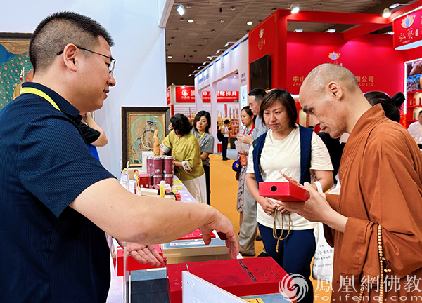 三年来,古陈记品牌创始人陈泽锦先生始终与凤凰网佛教文化并肩同行,在厦门佛事用品展上持续传递善念与温暖。自2022年起,陈泽锦先生便以义工身份亲身参与凤凰网佛教文化的展位工作,将热忱付诸行动,积极投身于中国佛教公益事业之中。身着义工服的他,忙碌于展位义卖区域,脸上始终洋溢着真挚而温暖的笑容,感染着来到展位上的每个人。