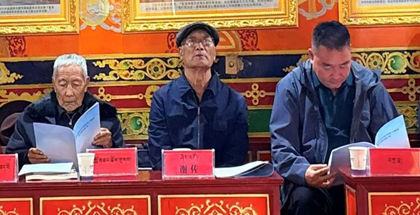 青海省因明学会常务理事彭毛才旦教授宣读《青海省因明学会奖励办法》