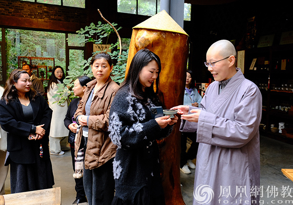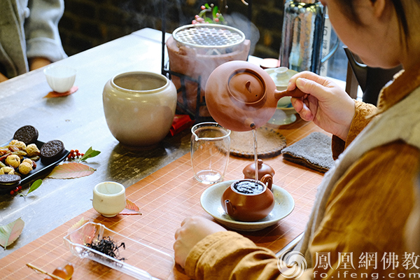 雅集活动上,茶艺师泡崇州本地茶(图片来源:凤凰网佛教文化 摄影:于椿根)