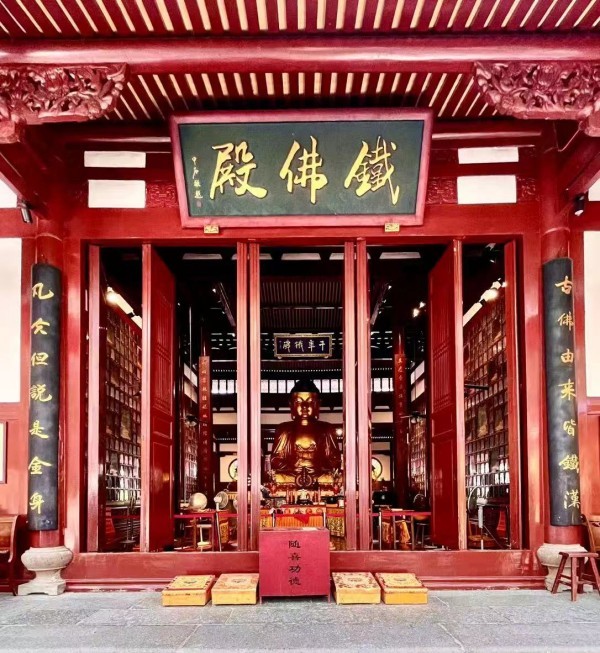 步入寺内,视觉与心灵的焦点,无可避免地会汇聚于那尊巍然端坐的铁佛。大铁佛是寺院的标志,铸成于唐宋年间,已有逾1100年历史。佛像高5.3米,重约50吨,是中国最早、最重、最大的特大型古代宗教铁铸件,代表了当时巅峰的冶铸技术。它为闽王王审知所铸,是古代“冶城”福州的直接证据。