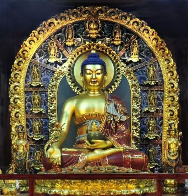 药师殿坐落于明代建筑灵源阁一层,殿内主供的药师佛一手执药瓶,一手持药草。