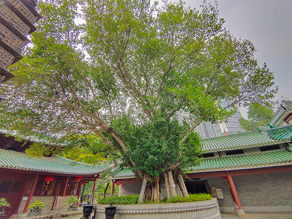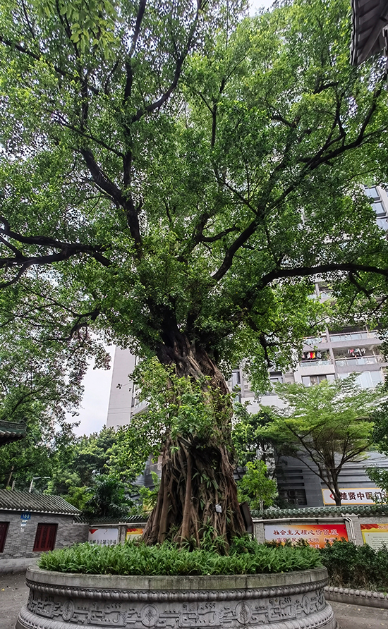 海幢寺山门外的心叶榕(图片来源:广州海幢寺)