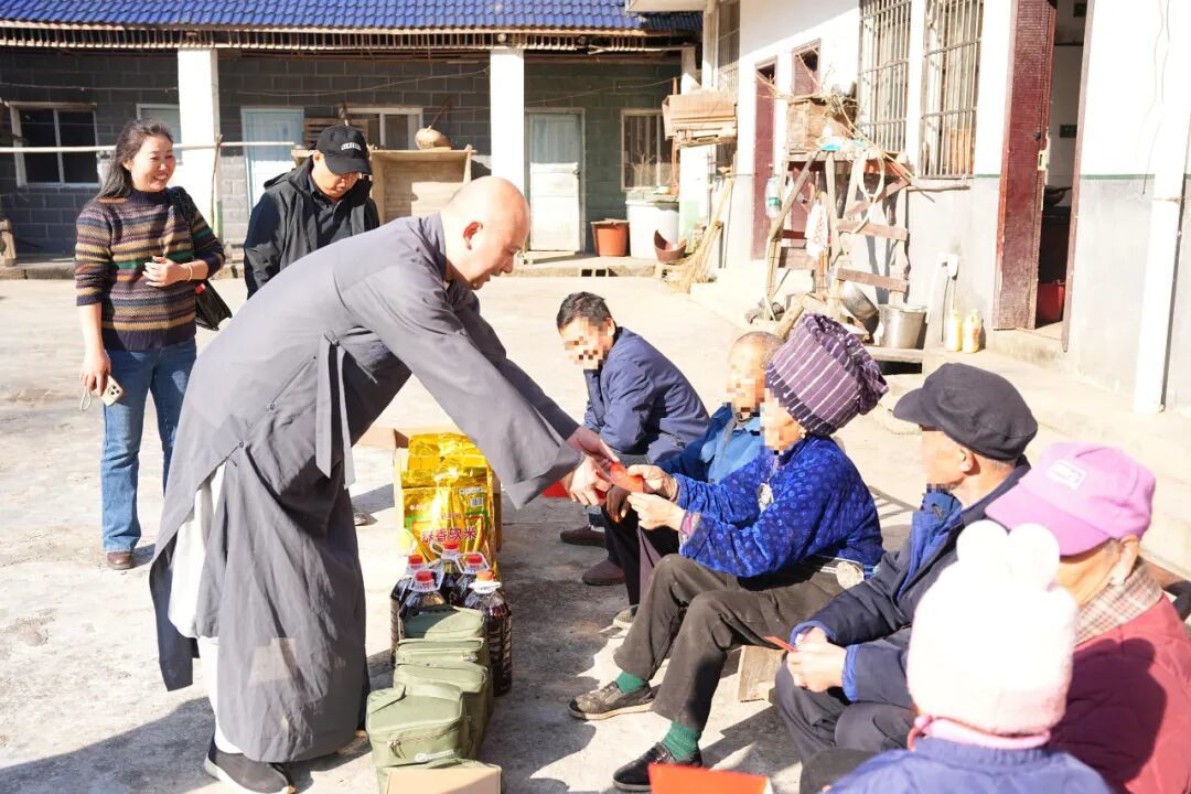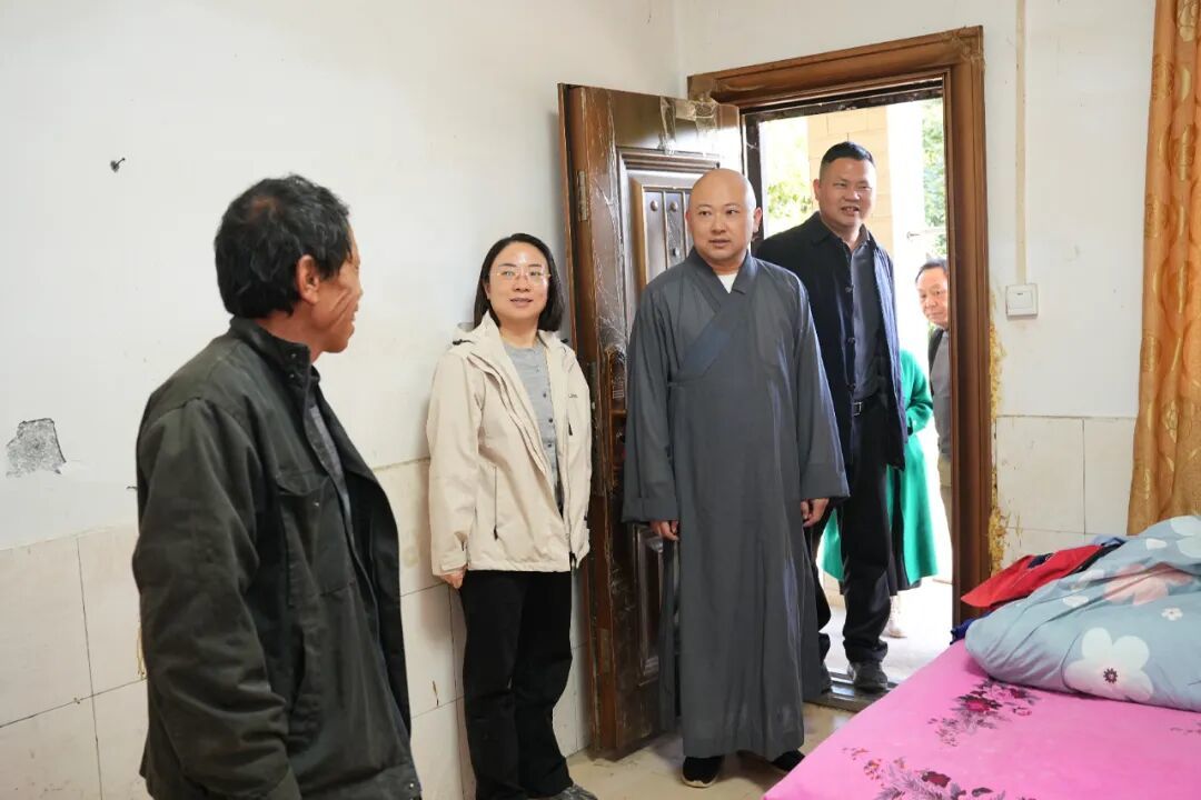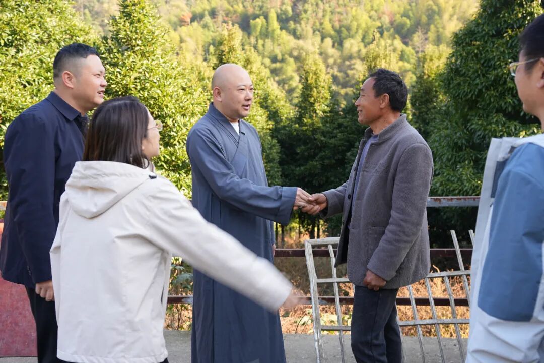 11月25日一早,永兴大和尚一行驱车前往溆浦县统溪河镇杨柳冲麻风村,山路弯弯,冬阳暖暖。在湖南省疾病预防控制中心性艾麻防所所长陈欢、支部书记郑军,怀化市疾病预防控制中心副主任吴爽,溆浦县疾病预防控制中心主任周敏、副主任龙英等人陪同下,永兴大和尚走进麻风村住所,深入了解麻风病患者的居住环境,关怀他们的日常生活状态,听取项目建设进度,并与患者亲切交流,认真倾听他们的生活诉求,鼓励他们树立生活信心,传递温暖与希望。