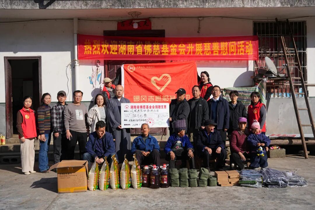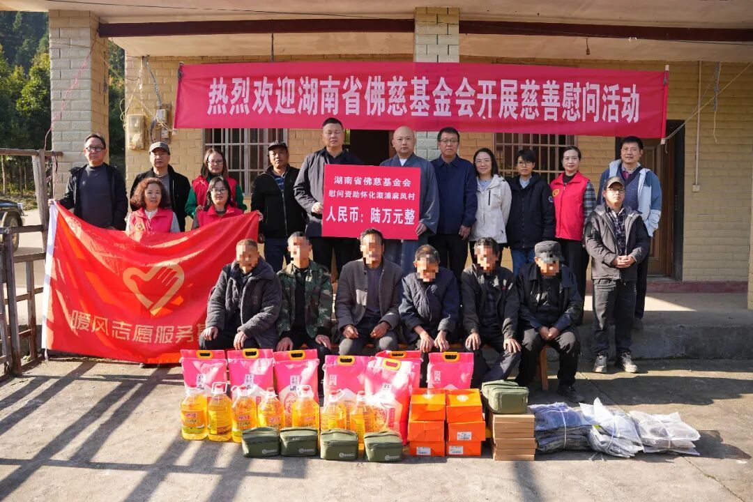 捐赠仪式上,永兴大和尚代表湖南省佛慈基金会向杨柳冲麻风村捐赠善款6万元,用于房屋维修改造,改善麻风村住民的居住环境,并捐赠毛衣、裤子10套。溆浦县杨柳冲麻风村现住有麻风治愈存活者10人,其中4人有二级畸残,生活极为不便。由于历史原因和认知局限,麻风病患者和康复者至今仍面临着社会歧视与偏见。他们需要的不仅是医疗援助,更需要社会的理解、接纳和关爱。