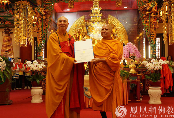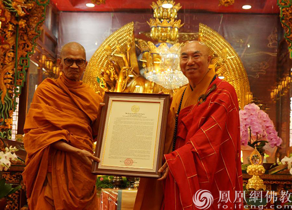 颁授仪式上,梵智长老代表摩诃朱拉隆功大学向宽运法师表达诚挚祝贺。梵智长老指出,摩诃朱拉隆功大学作为泰国国家级佛教大学,颁授荣誉学位意在推崇卓越之学养与济世之悲行。宽运法师毕生践行菩萨道,以智慧洞彻缘起,以慈悲普利群生,其行谊与大学“智慧为世界之光”的校训深相契合。宽运法师不仅凝聚香港与内地佛教信众,亦致力促进北传与南传佛教之融通,推动中泰法谊绵延。此次摩诃朱拉隆功大学与东林净土学院之合作,正为宽运法师桥梁作用之生动体现。摩诃朱拉隆功大学理事会一致认可宽运法师之德行、贡献与学养,荣誉博士之衔,实至名归。