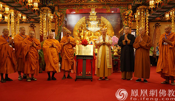 下午2时30分,祈福活动正式开始,摩诃朱拉隆功大学委员会副主席梵智长老,香港佛教联合会会长宽运法师,摩诃朱拉隆功大学校长帕拉布玛・潘迪长老,北京大學教授湛如法师,新加坡福海禪寺方丈明义法师共同主法。共同祈愿世界和平、灾障永息、风调雨顺、众生安乐。
