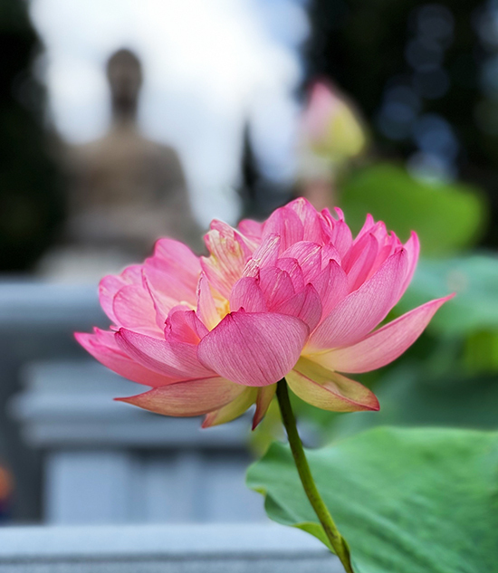 荷花展结束那天,净因法师曾站在万佛宝殿前,望向层层莲花和远处的天坛大佛。他告诉大众,通过精心挑选适合香港气候的睡莲品种,宝莲禅寺已实现一年365天都有莲花盛开。