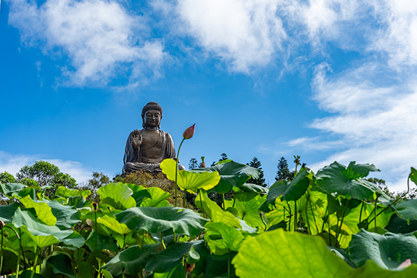 宝莲禅寺所在的昂坪是一个天然的莲花地,四面环山如同莲瓣,中间的平地恰似莲蓬。天坛大佛端坐于莲花宝座之上,寓意着修行者通过努力可以达到不同境界的进步。