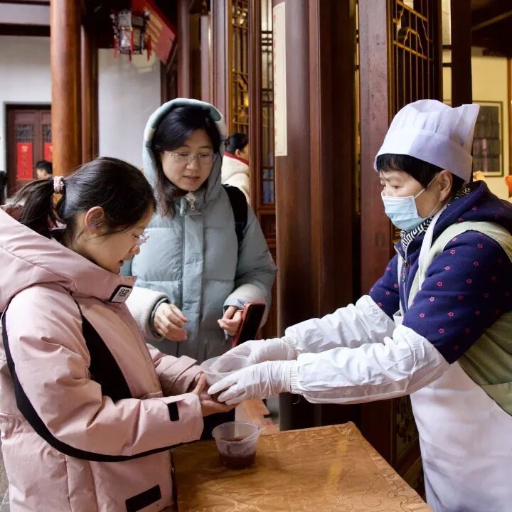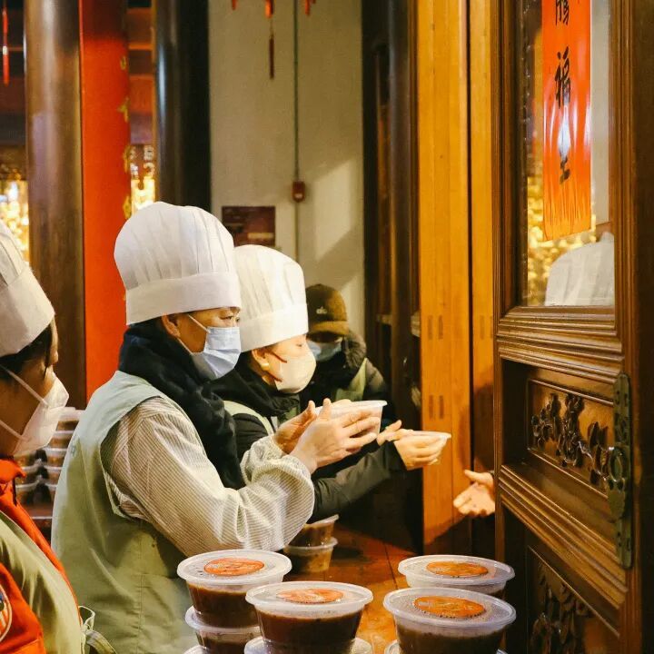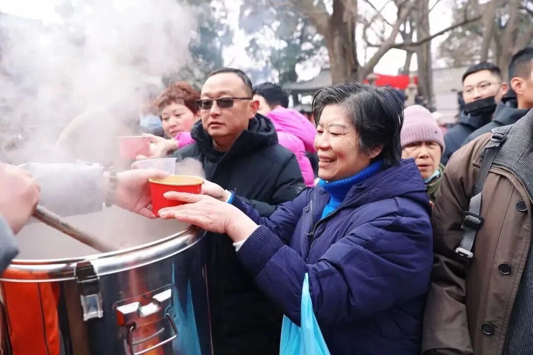 清晨6点,寺院内的奉粥点准时开启,工作人员有序开展奉粥工作,市民和游客按需领取,在粥香中感受腊八节的民俗氛围,寄托对新一年的美好祝福。