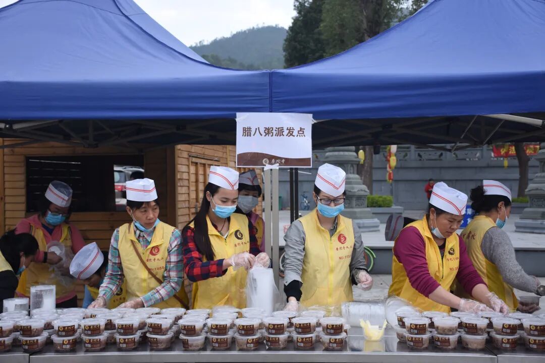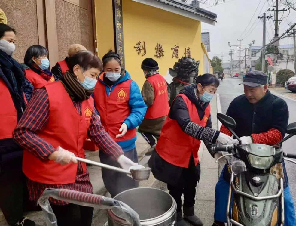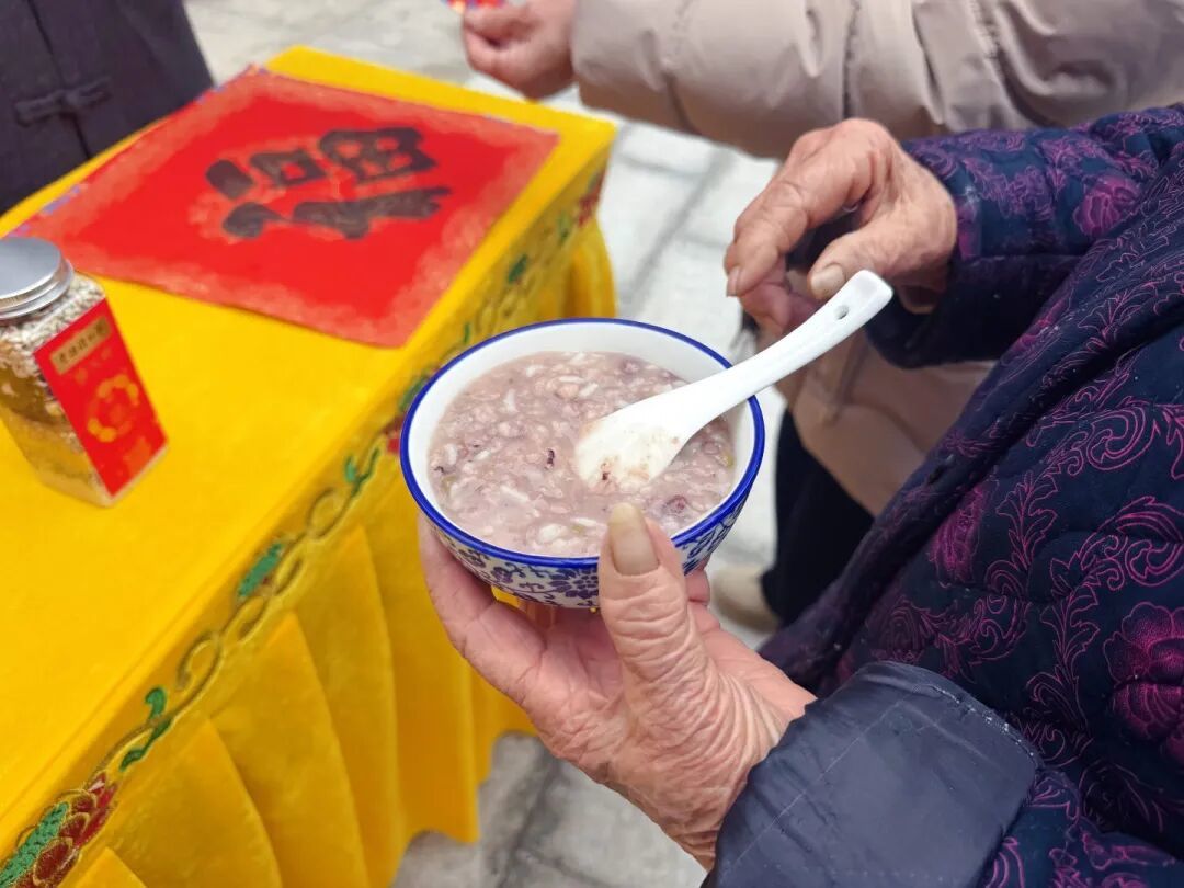 寺院提前甄选糯米、红豆等十余种食材,经精心熬制备好2000余碗腊八粥。活动当日,爱心团队分赴集镇、菜场、敬老院等地,为居民及孤寡老人等送上热粥与问候;同时联合村干部派送800份腊八米,让节日仪式感走进千家万户。