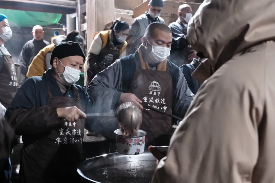 2026年1月26日,农历腊月初八,华岩寺秉承传统,举行腊八节施粥活动。道坚法师领众法师亲手熬制,小火慢熬,直至腊八粥出锅。是夜,斋堂里飘出的阵阵粥香,弥漫了整座寺院。愿这份暖意,能跨越寒冬,守护内心的美好。