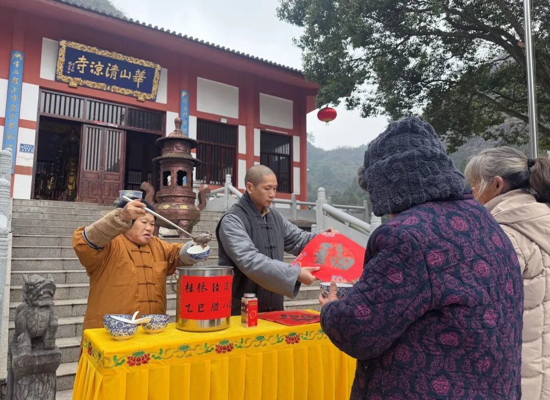 腊八节,阳朔华山清凉寺向广大信众结缘腊八米,在寺院施粥送福,为大家驱走冬日寒意,带来一年吉祥。