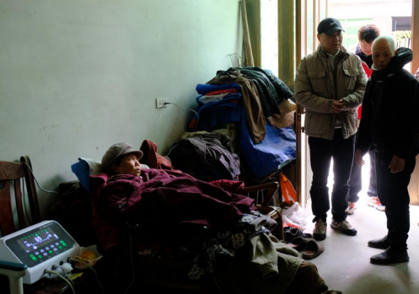 家住文成县严本村的周爷爷,如今已八十多岁高龄,命运却似乎对他格外严苛。儿子早逝,儿媳再婚后便带着孙子长期居住在外地,与他断了来往。女儿挂靠的公司经营不善负债累累,周爷爷也因多种原因不符合低保、低边的申报条件,每月仅靠一百多元的老年金维持生计,还要挤出钱来买药。老伴与儿子的相继离世,让本就困顿的生活更添阴霾,周爷爷的精神状态日渐消沉,反应也变得迟缓。志愿者初次探访时,被他居住的环境深深触动,那是一栋建于六七十年代的老瓦房,墙体由黄泥沙砌成,屋后的厕所破烂不堪。