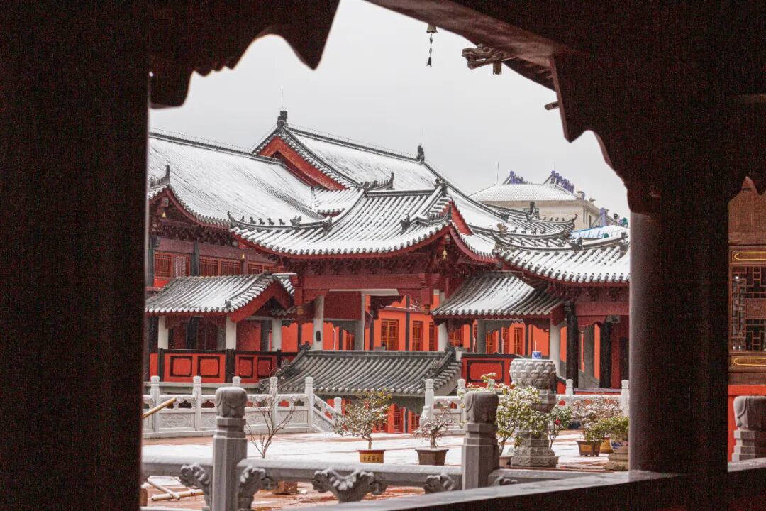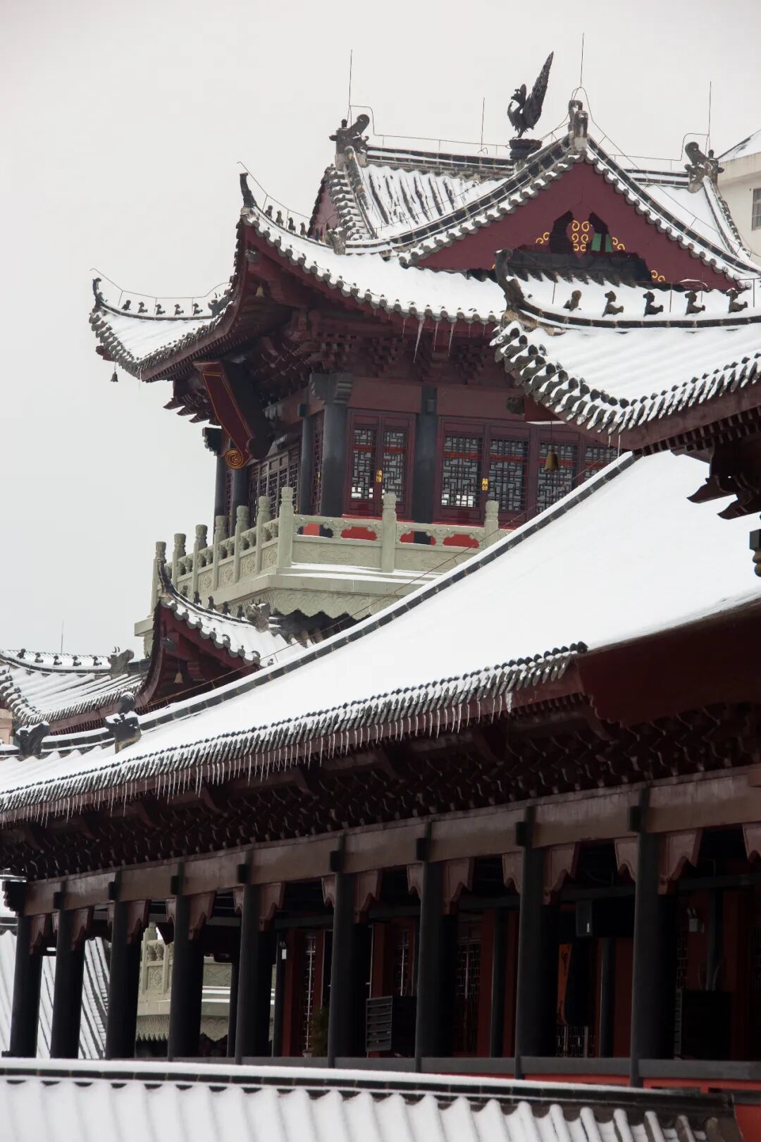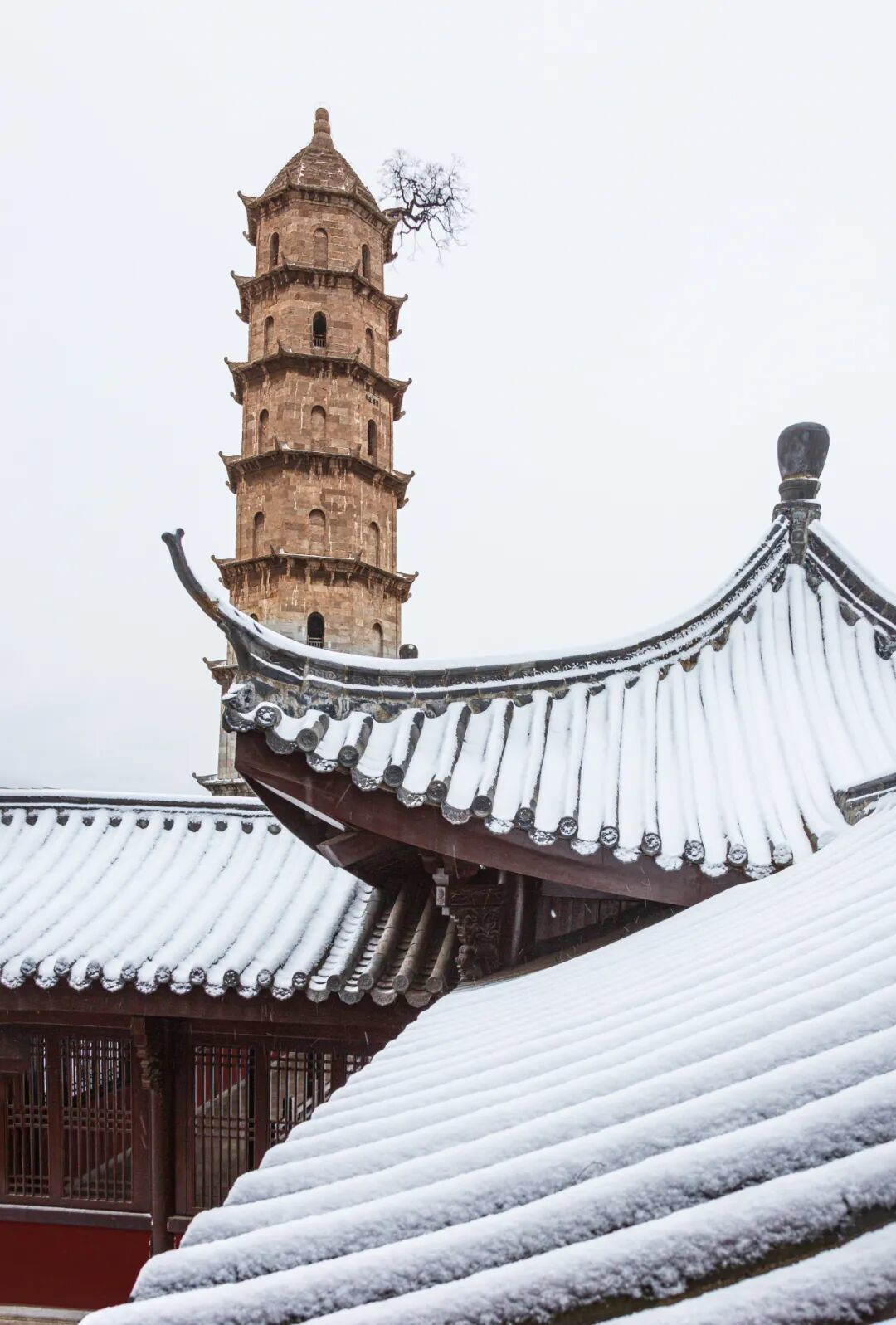 一场雪,将安国寺盛唐的余韵、北宋的风雅、明清的遗痕,以及所有纷扰过往,轻轻覆盖,归于一白。唯有檐角风铃、殿前孤灯,在素白世界里,标记着永恒的梵音。