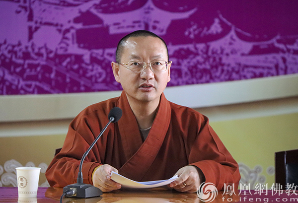 专题学习会现场,崇化大和尚宣讲传达全国两会精神
