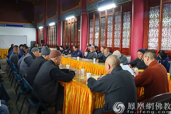 会议强调,全寺上下要持续深化思想政治引领,把学习贯彻全国两会精神,作为当前和今后一段时期的重要工作任务,始终在思想上政治上行动上同党中央保持高度一致。同时,结合当前宗教界正在开展的 “学法规、守戒律、重修为、树形象”教育活动,紧扣“学、查、改、立”主线,持续推进教育活动走深走实,不断提升宗教事务治理法治化水平,引导佛教界人士和信教群众牢固树立正确的国家观、历史观、民族观、文化观、宗教观,不断增进“五个认同”,自觉投身中国式现代化建设。