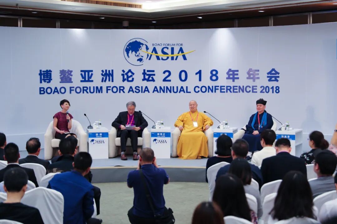 2018年4月11日,第4届博鳌亚洲论坛“宗教和合与文明互鉴”分论坛。中国佛教协会副会长印顺法师,中国道教协会副会长、天台山桐柏宫主持张高澄道长,圣公会环南教会前主席、新加坡圣公会荣休主教周贤正,分别代表佛教、道教、基督教三大教派,展开对话,凝聚共识、消弭分歧、寻求最大公约数,共谋民众福祉,增进了各宗教及教派之间的理解,取得了众多共识,达成了一系列合作。三位宗教代表用他们的智慧与信仰发出了共同的声音:各宗教和睦相处、和衷共济、和谐发展,为共建人类命运共同体祈愿行愿,为推动中国宗教进一步走向世界做出新的探索和努力。