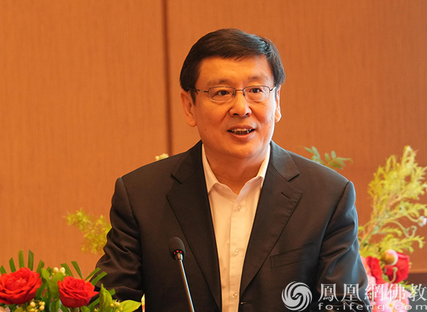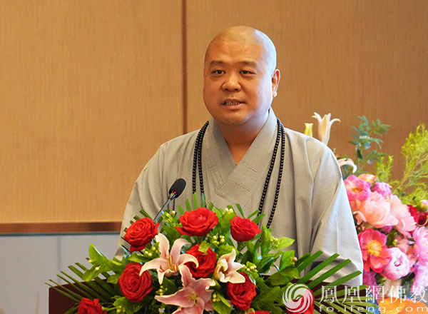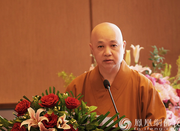 中国佛教协会副会长、山东省佛教协会会长本悟法师宣读中国佛教协会贺信