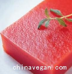 2、将作法1的锅中材料倒入模型中,待冷却凝固即成为蕃茄蒟蒻豆腐。