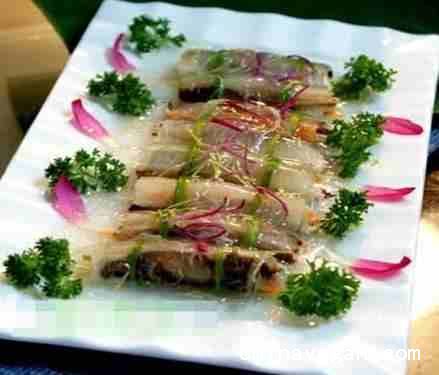 3、待蒸笼水开时放入卷好的冬瓜三丝卷,用大火蒸4分钟后,另用倒入清汤,调入盐、素易鲜、烧开,用湿生粉勾芡,淋入香油,浇到冬瓜卷上撒上荷花丝、花蕾丝(荷花)即成。
