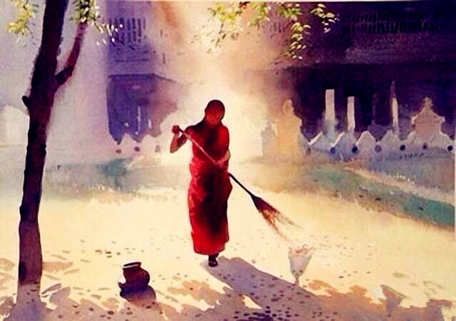 有人认为神秀大师的时时勤拂拭,勿使惹尘埃,不及六祖本来无一物高超,于是把时时勤拂拭忽略了。谁知时时勤拂拭乃反省功夫。初发心人,时时检查自己思想行为上的尘埃,很有必要,再进一步,尘埃拂去了,变为肥料,六根六尘成妙用,你说好不好?世人总以为自己样样都对,其实不然,众生都有烦恼,都有过错,时时拂拭,知错能改就好了。