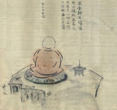 南台静坐一炉香,守安禅师在南岳衡山的南台禅院内,每次点香、禅坐。终日凝然万虑忘,一天到晚都无所挂怀,心无所住,一切东西都不在萦怀于心了。心禅达到凝然的状态,自然万虑偕忘。什么是与非,有与无,菩提与烦恼,佛与魔,生死与涅粲,所有如一切念头都已不起。正如《圆觉经》云:善男子,但诸菩萨及末世众生,居一切时,不起妄念;于诸妄心亦不息灭,住妄想境,不加了知,于无了知,不辨真实。