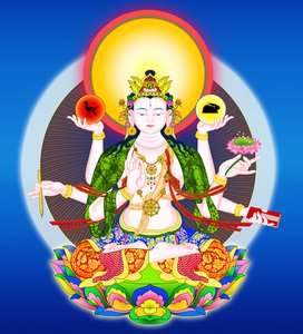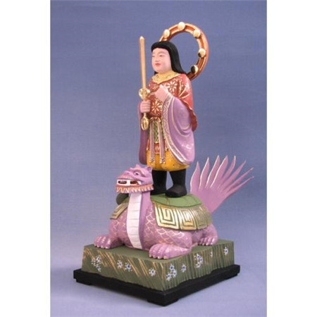 妙见菩萨的形象一般做菩萨形,有时化为云中乘龙的天 女形。有二臂、四臂之分。其中,二臂像左手持莲花,莲上 有北斗七星,右手的拇指、食指相捻,中指稍屈,掌向外, 做说法印,头戴宝冠,结跏趺坐于五色云中。在密教中,以此菩萨为本尊所修的法,称为妙见法、北 辰法、尊星法,可攘除灾厄,守护国土,治愈眼疾。